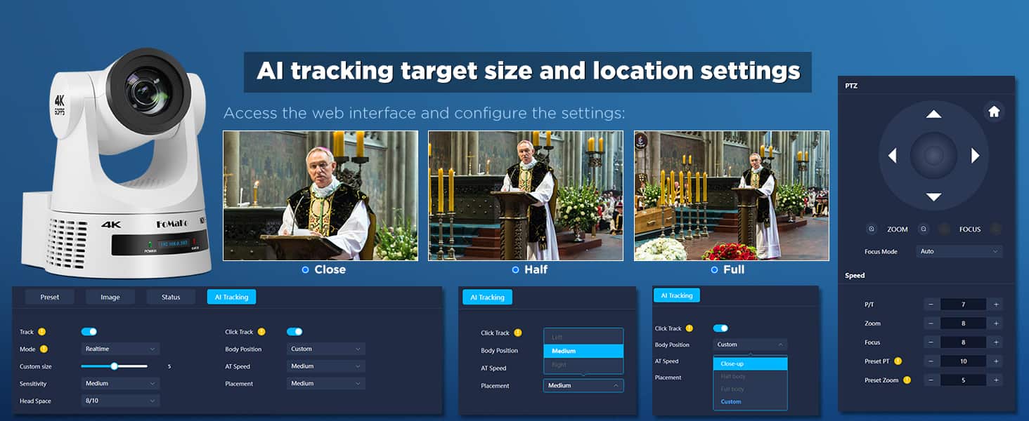 | Network Protocols | HTTP,RTSP, RTMP, ONVIF, STR, GB28181;Support Multicast; VISCA over IP; NDI HX2/HX3 (optional) (100Mbps Ethernet, supports PoE+, supports remote upgrade/remote reboot/remote reset) |