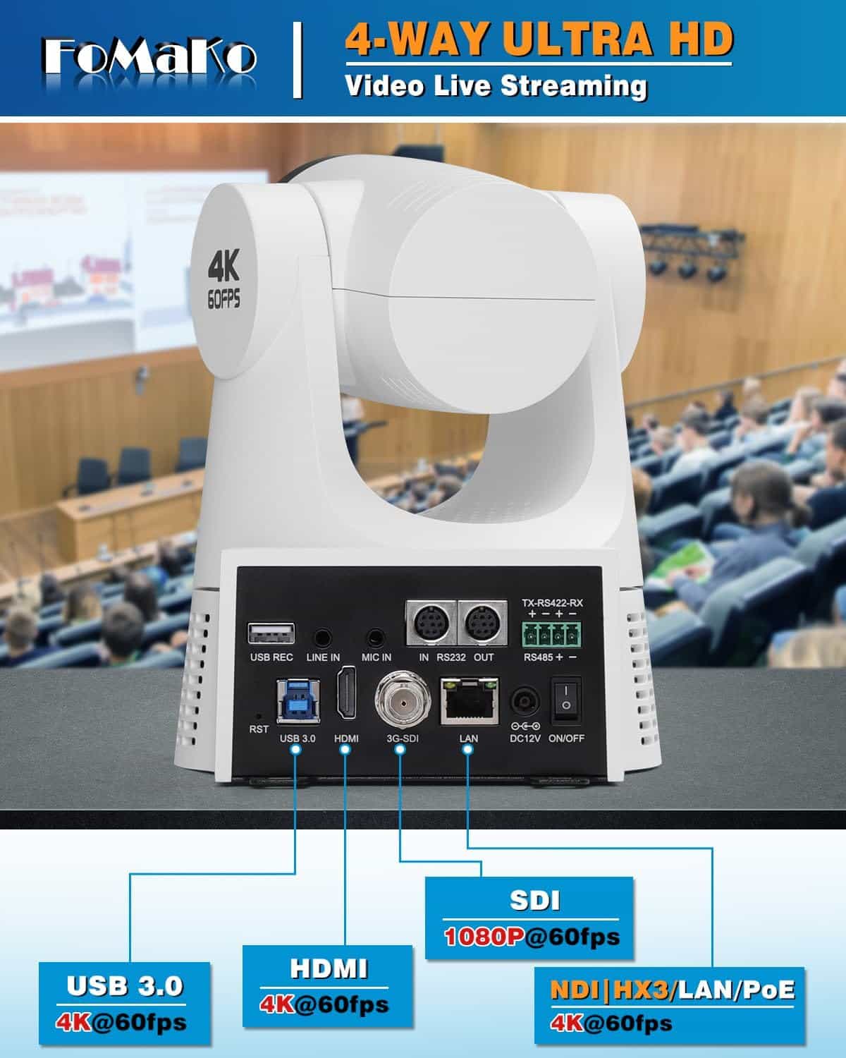 | Video Interfaces | HDMI, 3G-SDI, LAN(POE+), USB3.0, USB REC, LINE IN, MIC IN, RS232-IN, RS232- OUT, RS422(compatible with RS485), DC12V Power Supply, Power Switch |
