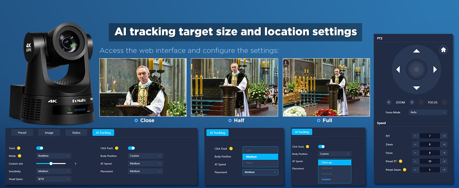 | Network Protocols | HTTP,RTSP, RTMP, ONVIF, STR, GB28181;Support Multicast; VISCA over IP; NDI HX2/HX3 (optional) (100Mbps Ethernet, supports PoE+, supports remote upgrade/remote reboot/remote reset) |